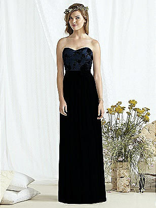 Strapless black cotton dress with white floral motif. It has black and white ribbon belts which can be worn together or separately for 2 slightly different looks. It is fully lined with a black tulle hem.